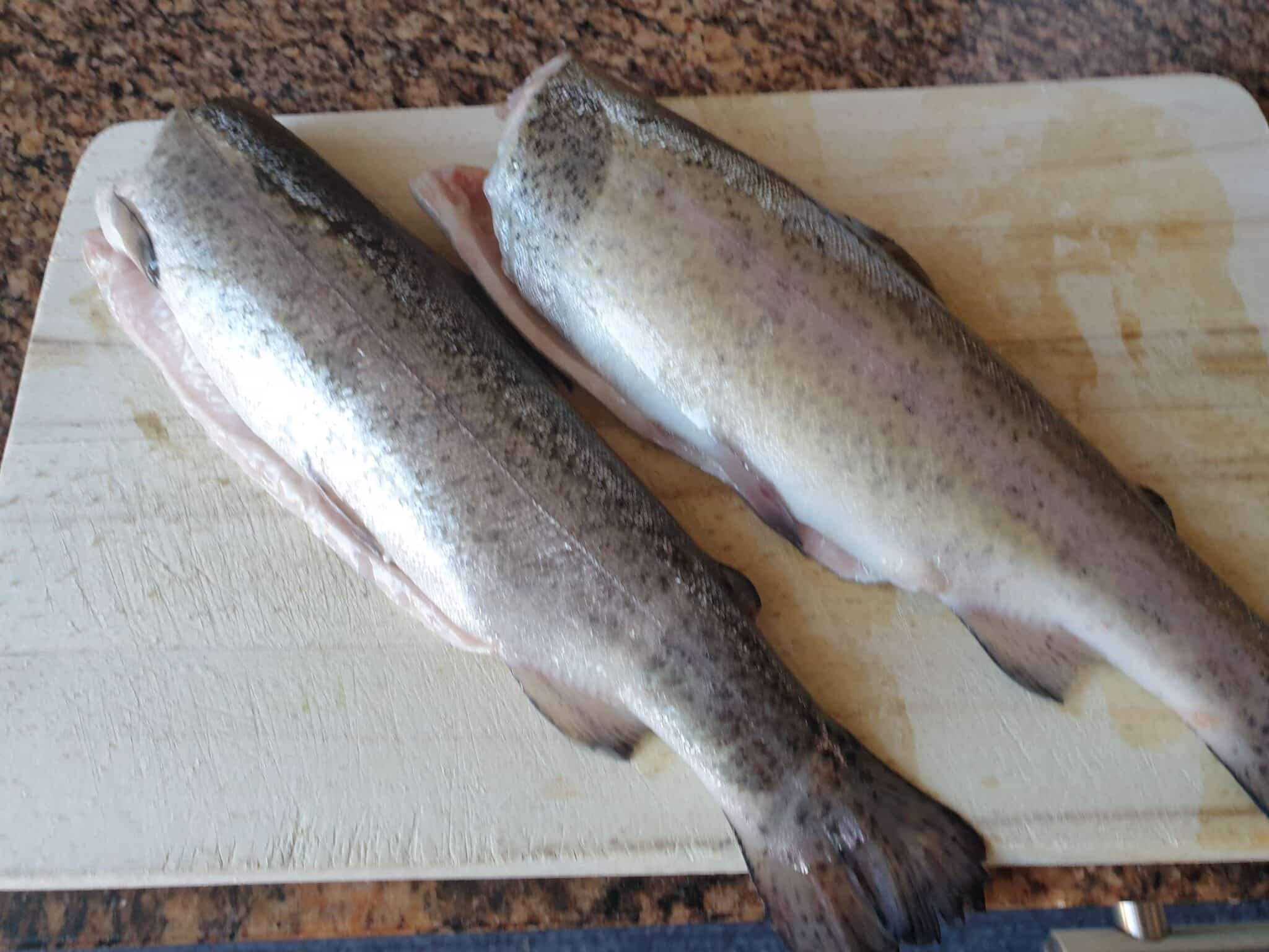 leg 2 helften op de forel knijp er wat citroensap over