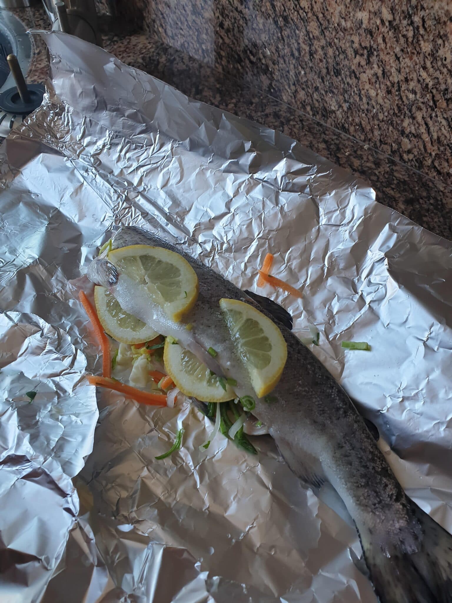 Leg de forel op de aluminium folie