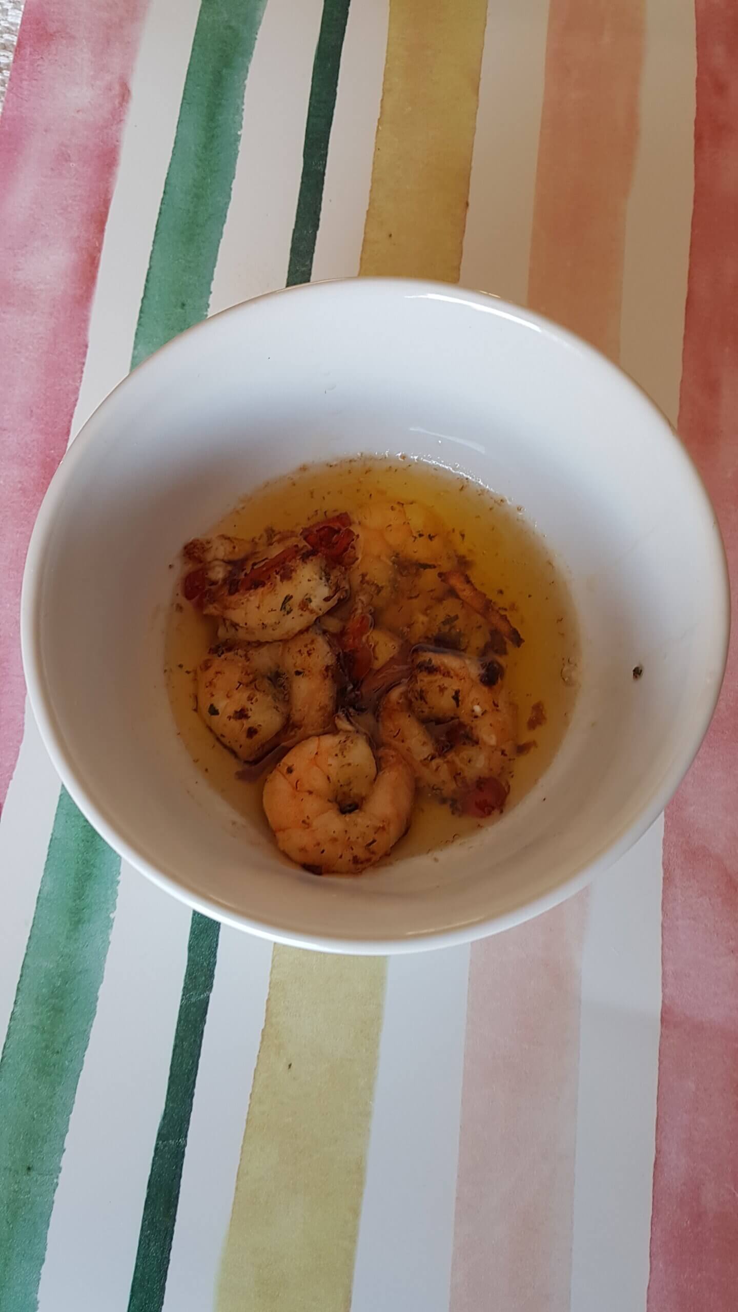 Bak de garnalen , laat de garnalen nu 1 tot 2 minuten bakken (zorg dat ze van kleur veranderen maar niet te veel garen anders worden ze droog