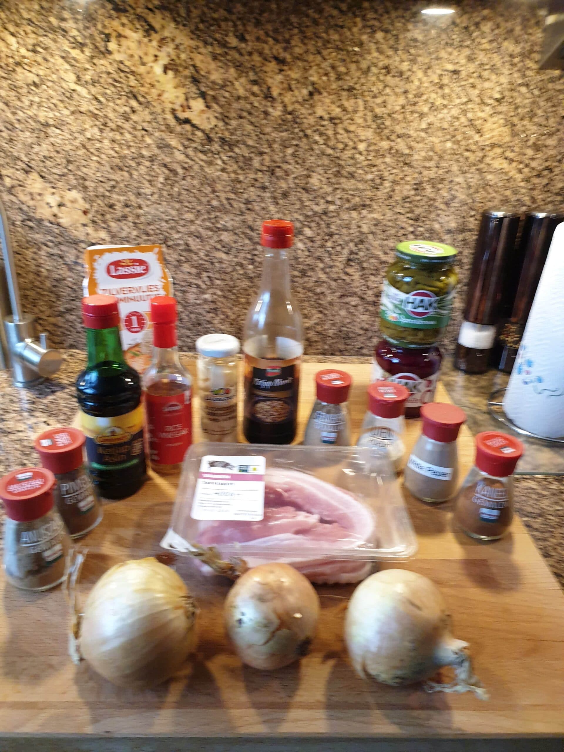 Vul de pan met heet water tot alles onder staat. zet het geheel op de sudderplaat en laat het 1 uur heerlijk sudderen
