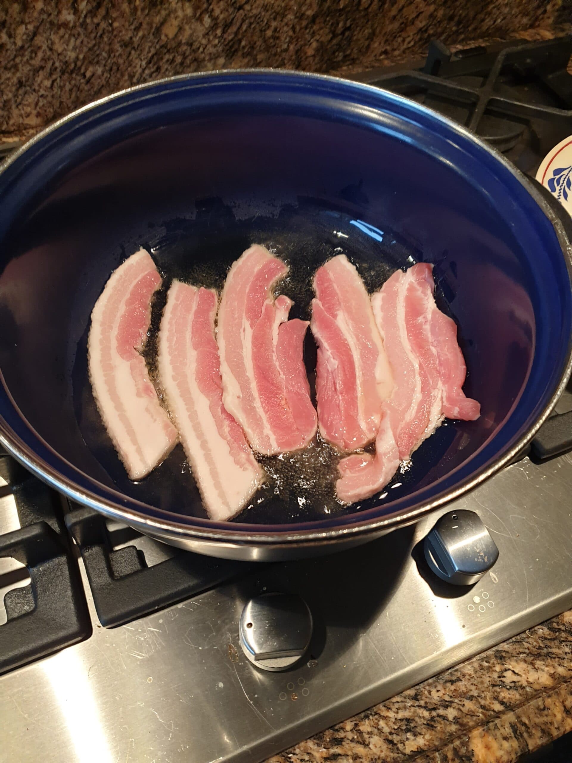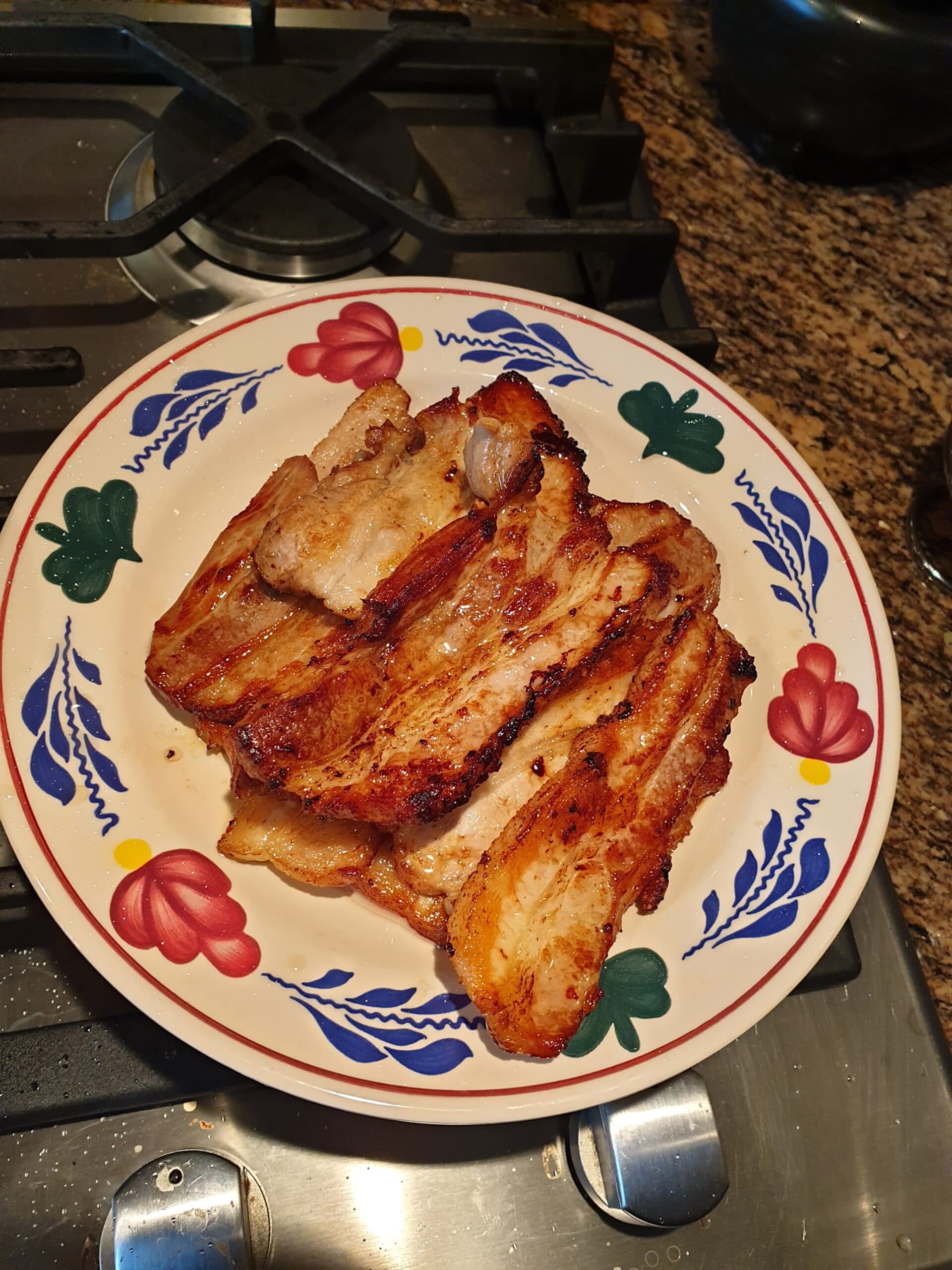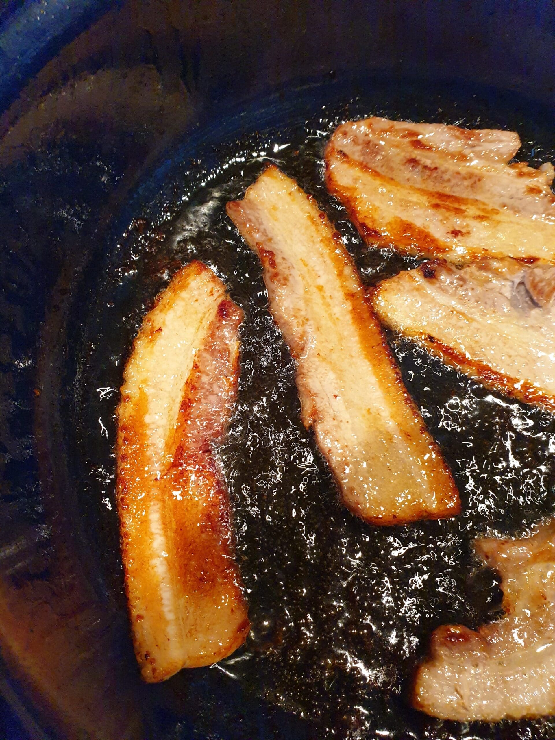 snij de speklappen door de midden en bak de eerste helft daarne de tweede helft niet stappelen goed lapje voor lapje