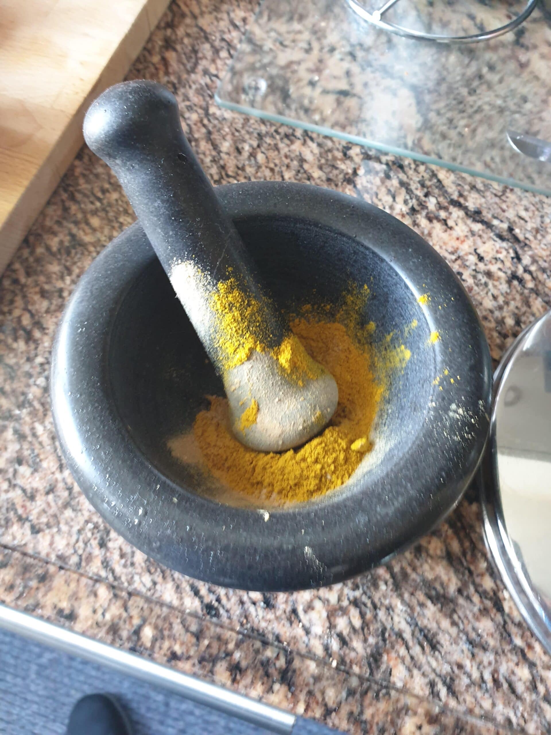mix de losse kruiden kerrie 2 eetlepels ,gember 2 koffielepels 2 koffielepels citroengraspoeder